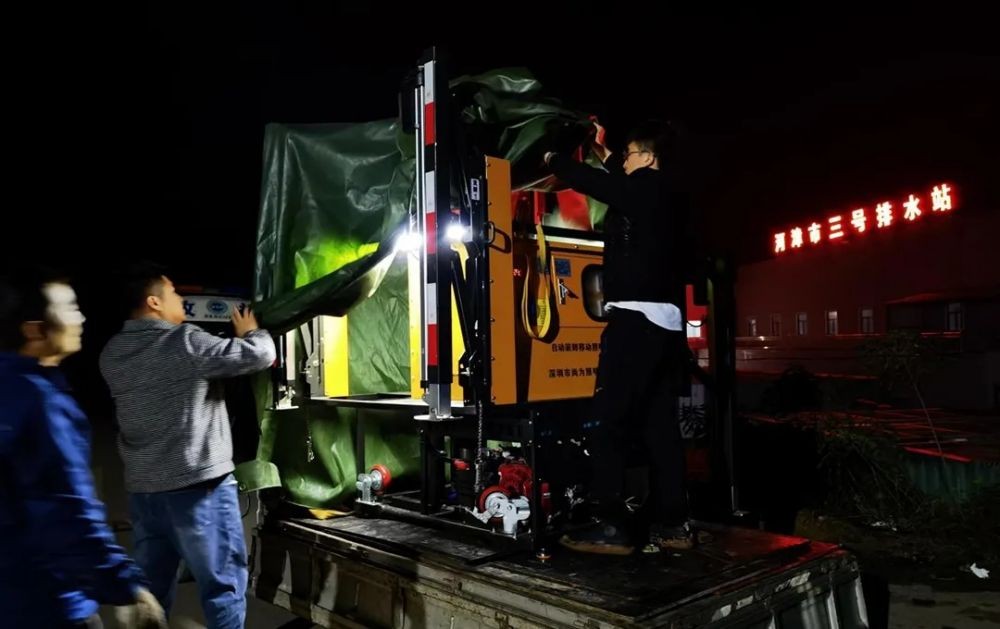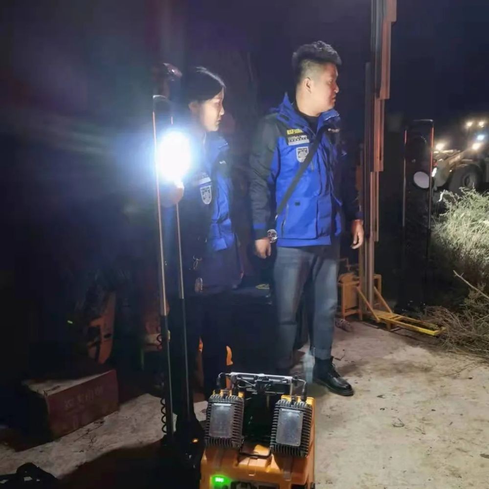 白天,尚為應(yīng)急救援隊(duì)兵分兩路,一隊(duì)為所有物資歸集充電,另一隊(duì)陪伴當(dāng)?shù)氐念I(lǐng)導(dǎo)巡查汛情。夜晚更是我們工作的重中之重,為滿足現(xiàn)場(chǎng)大面積照明,我們操作無(wú)人機(jī)進(jìn)行夜間照明,救援現(xiàn)場(chǎng)變得如同白晝。