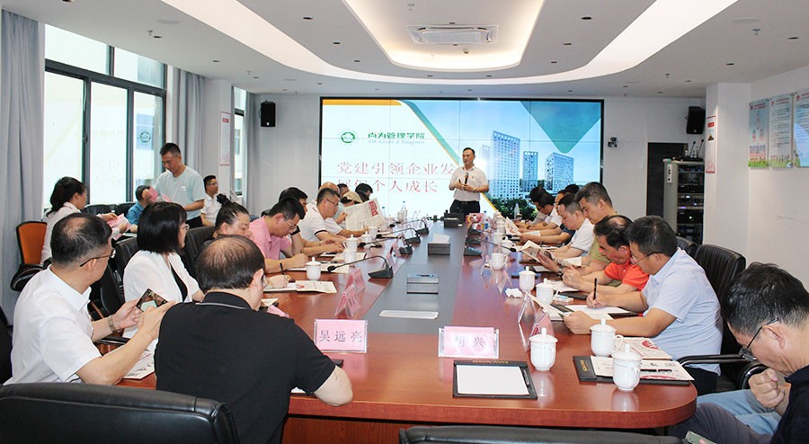 智能家居展廳參觀結(jié)束后,高企聯(lián)企業(yè)家們來到會議室,尚為集團董事長胡興為企業(yè)家們就高質(zhì)量黨建引領(lǐng)企業(yè)高質(zhì)量發(fā)展及個人發(fā)展主題,分享了尚為黨建學(xué)習(xí)的部分核心成果。胡興就企業(yè)發(fā)展和個人成長提出的四大問題引起了企業(yè)家們的深思,在逐步解答的過程中贏得了一陣陣的熱烈掌聲。
